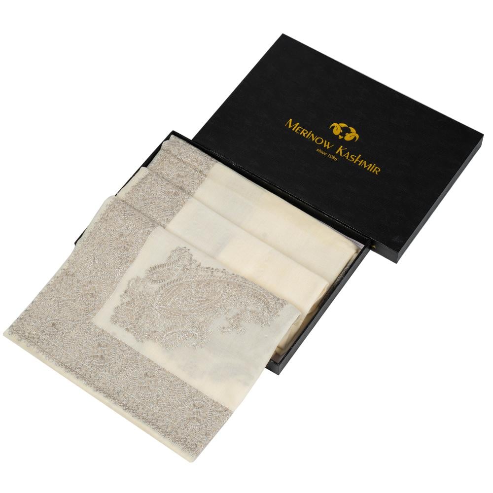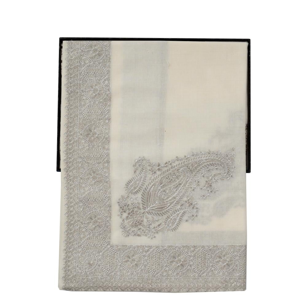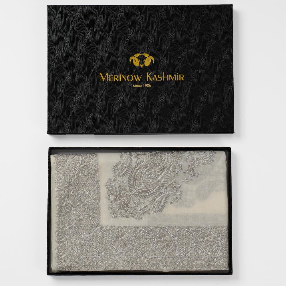 شال كشميري شتوي صوف 100% لون رصاصي فاتح