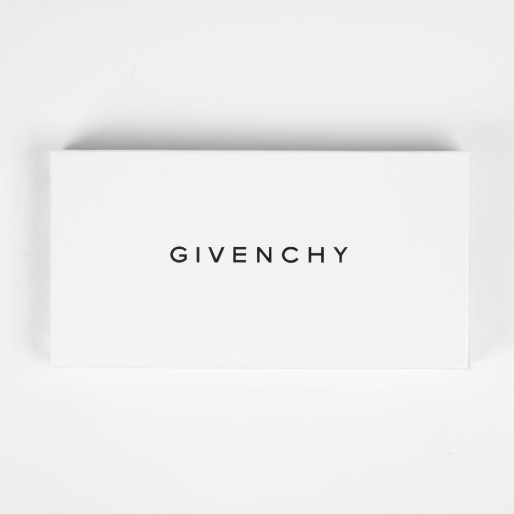 يُقدم شماغ ماركة جيفنشي في عبوة كلاسيكية مستطيلة يوضع بداخلها الشماغ مطبق ومكوي بعناية