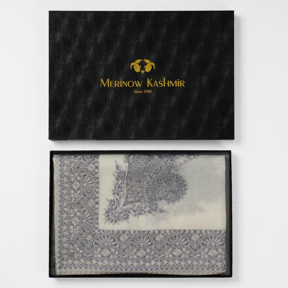 غترة شال ميرينو كشمير الشتوية أصدار 2025 لون ازرق على رمادي
